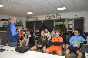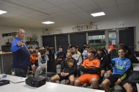 La séance a débuté par la projection de vidéos pédagogiques soigneusement sélectionnées, permettant d’aborder certaines situations de jeu et d’échanger avec les joueurs sur leur compréhension des règles. Cette première approche théorique a ensuite laissé place à des ateliers pratiques sur le terrain, favorisant l’apprentissage par l’expérience.